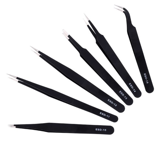 Profesjonalny zestaw pęset do zastosowań serwisowych i modelarskich. W komplecie znajduje się 6 pęset prostych oraz ukośnych, niezbędnych dla każdego elektronika. Narzędzia z powodzeniem sprawdzą się przy drobnych naprawach precyzyjnych (np. podważanie układów). Wykonane z antystatycznego materiału (ESD), który zapobiega powstawaniu wyładowań elektrostatycznych.