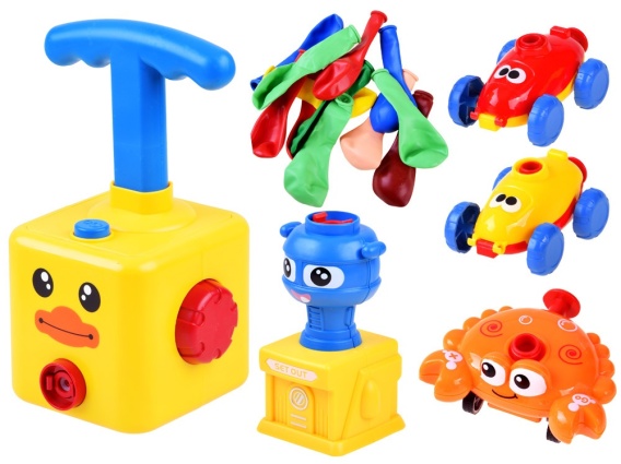 Balonowa wyrzutnia do zabawek z pompką świetnie się sprawdzi podczas zabawy. Zabawka aerodynamiczna zachęca do ruchu, do myślenia, obserwacji przyczyny i skutku. Zabawa wyrzutnią jest bardzo prosta, wystarczy zamontować tłok na kwadratowej kostce, zamocować balonik np. w autku i wykonać parę ruchów tłokiem. Balonik się napompuje i co za tym idzie: autko pojedzie, kosmonauta, rakieta poleci. Super pomysł na atrakcyjną zabawę.