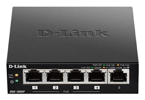 D-Link DGS-1005P/E łącza sieciowe Nie zarządzany Gigabit Ethernet (10/100/1000) Obsługa PoE Czarny D-Link