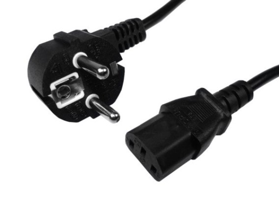 Kabel zasilający, długość 3m z zalewanym kątowym wtykiem sieciowym Schuko i prostym gniazdem IEC-320- C13. Grubość przewodu 3x0,75mm; 10A i 250V. Posiada znaki bezpieczeństwa NF, DVE, CEBEC i KEMA KEUR.