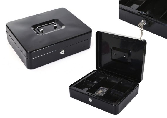 Kasetka Skrzynka Na Pieniądze Metalowa Z Przegródkami 2 Kluczyki Czarna LEAN