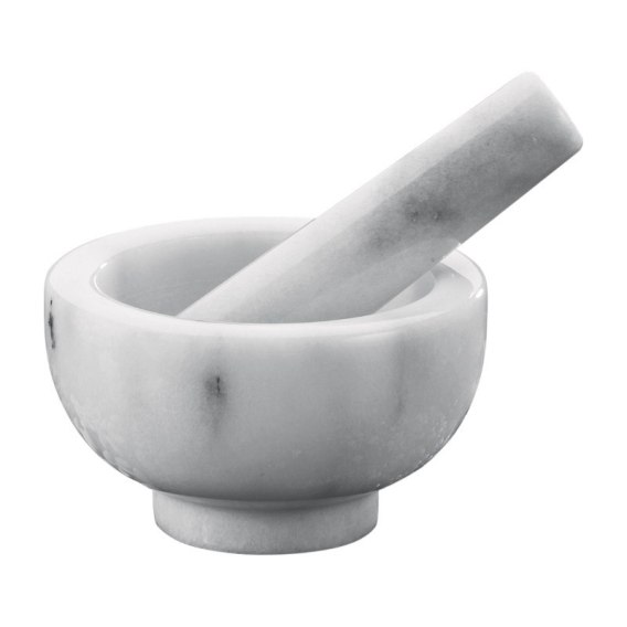 · Zaokrąglona końcówka tłuczka dopasowuje się do kształtu moździerza