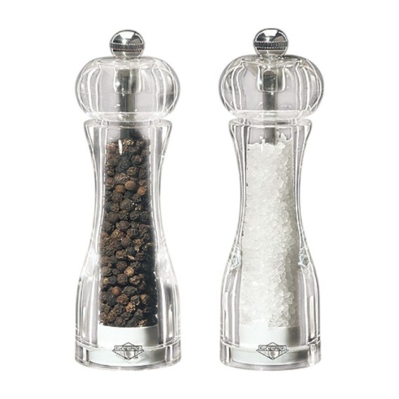 Przezroczysty korpus z akrylu umożliwia łatwe rozróżnienie zawartości oraz kontrolę poziomu przypraw. Co ważne, sól i pieprz są dołączone do zestawu, więc młynki są gotowe do użycia od razu po rozpakowaniu.