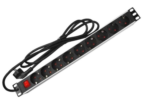 Listwa zasilająca 1U 19" 9 gniazd schuko wyłącznik