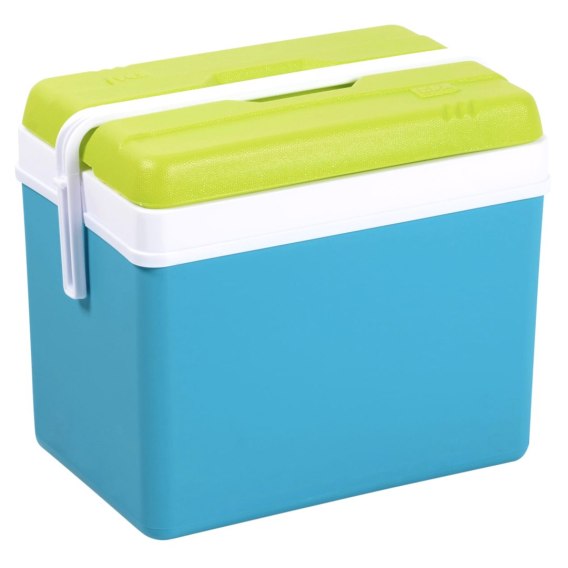 Lodówka turystyczna 35L KAMAI EDA na wkłady mrożące, turkusowa z białą rączką i zieloną pokrywą EDA