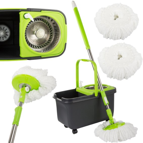 Mop obrotowy rotacyjny 360 dozownik wiadro zestaw 2x nakładki mikrofibra