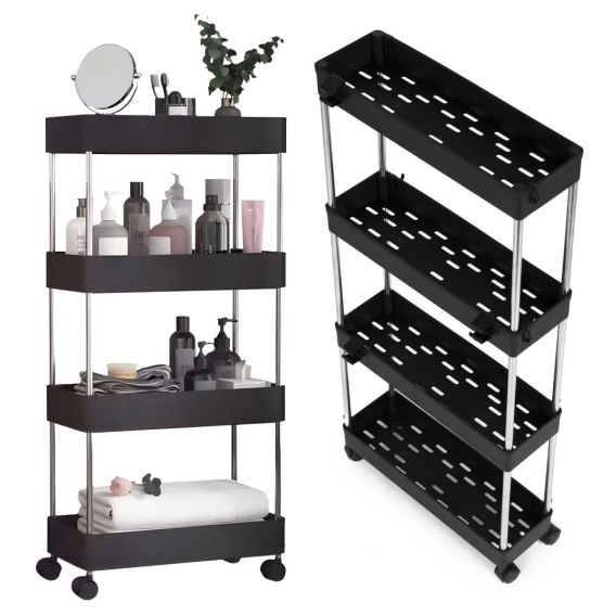 Plastikowy regał łazienkowy z 4 półkami kółka czarny ModernHome ModernHome