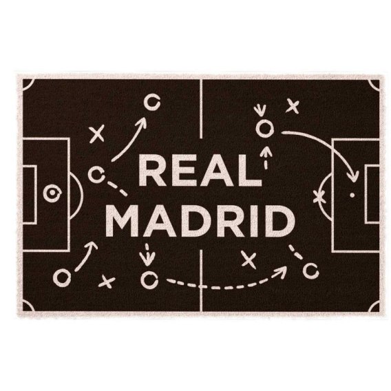 Stylowy design inspirowany schematem boiska z napisem Real Madrid podkreśla Twoją piłkarską pasję, a praktyczne wykonanie gwarantuje funkcjonalność. Wycieraczka o wymiarach 40 x 60 cm skutecznie zatrzymuje kurz i brud, a dzięki antypoślizgowemu spodowi z PVC pozostaje stabilna na każdej powierzchni.