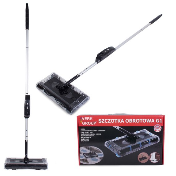 Obudowa szczotki jest takpłaska że można ją wsunąć bez problemu pod szafy, łóżka itd. i dysponuje przegubem na uchwycie, który pozwala okręcać ją swobodnie o 360 stopni. Kurz i brud zbierane są do pojemnika, który można łatwo opróżnić.